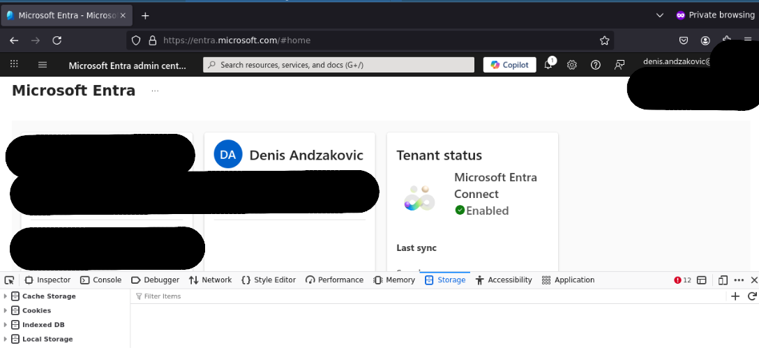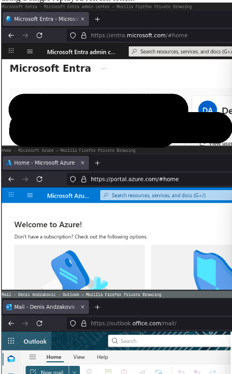 The attacker can then browse to any authenticated site. The following shows the attacker browsing to entra.microsoft.com and the authentication flow completing:
