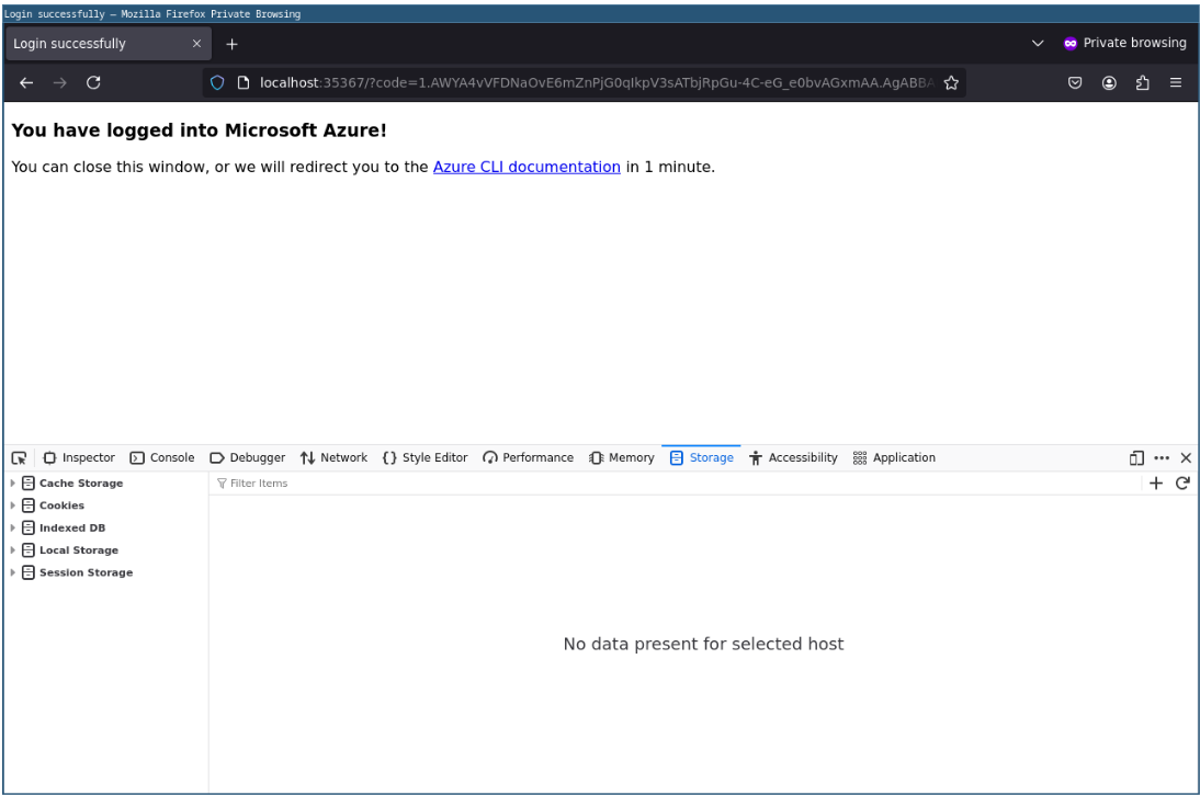 Once you have the stolen x-ms-RefreshTokenCredential loaded into your browser, you can use the az login command with the Azure CLI and complete the browser authentication flow. This will give you persistent access to the Graph API and various other APIs used by the Azure CLI.