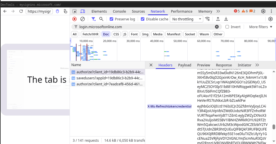 Next open a tab, pop window.location = "https://mysignins.microsoft.com" or a similar Entra ID authenticated service into the console and watch the Network tab to get your x-ms-RefreshTokenCredential: